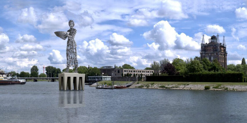 Kunstenaar Gerhard Lentink ontwierp het beeld ter gelegenheid van het 800-jarig bestaan van Dordrecht. Het was bedoeld te worden geplaatst op de punt van de wijk Stadswerven. Door bezwaren van Rijkswaterstaat en de inschatting van TNO dat dit enorme extra kosten met zich mee zou brengen vanwege de aanpassing van de radarsystemen, leek het plan van tafel te zijn.